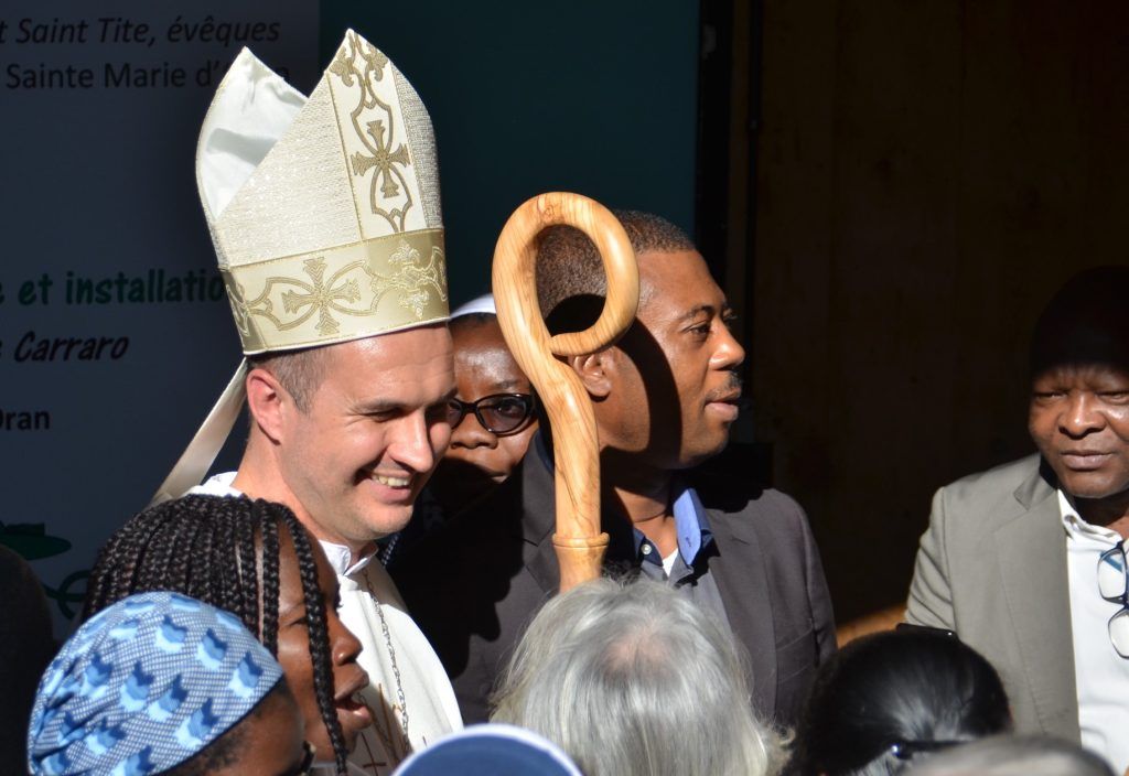 Anche la celebrazione di oggi, così come la veglia di ieri, non poteva non svolgersi in un clima di dialogo interreligioso: «Qui si è davvero chiamati a essere segno di Cristo in una terra totalmente musulmana», ricorda. Ma anche in uno spirito ecumenico. La maggior parte dei cristiani, infatti, sono giovani studenti o migranti subsahariani appartenenti a diverse confessioni. Insieme hanno partecipato alla veglia di ieri sera, recitando la preghiera ecumenica di Taizé, preceduta da quella della confraternità musulmana degli alauiti, che in tante occasioni hanno dimostrato la loro amicizia e vicinanza nei momenti più significativi della Chiesa di Orano. «Ci sono tante persone che capiscono che la diversità è fonte di gioia non di paura», riflette padre Davide che ha scelto come motto episcopale: “Dio è amore”, molto caro anche al suo predecessore Pierre Claverie, sepolto accanto alla piccola cattedrale in cui si è svolta la cerimonia. Cerimonia che è stata officiata da altri due predecessori di padre Davide: Jean-Paul Vesco, attuale arcivescovo di Algeri, e Alphonse Georger. Tra i consacranti anche il vescovo di Treviso, Michele Tomasi che, con due familiari di Davide Carraro e il prete della sua parrocchia di origine, sono gli unici che sono riusciti a ottenere il visto dall’Italia.