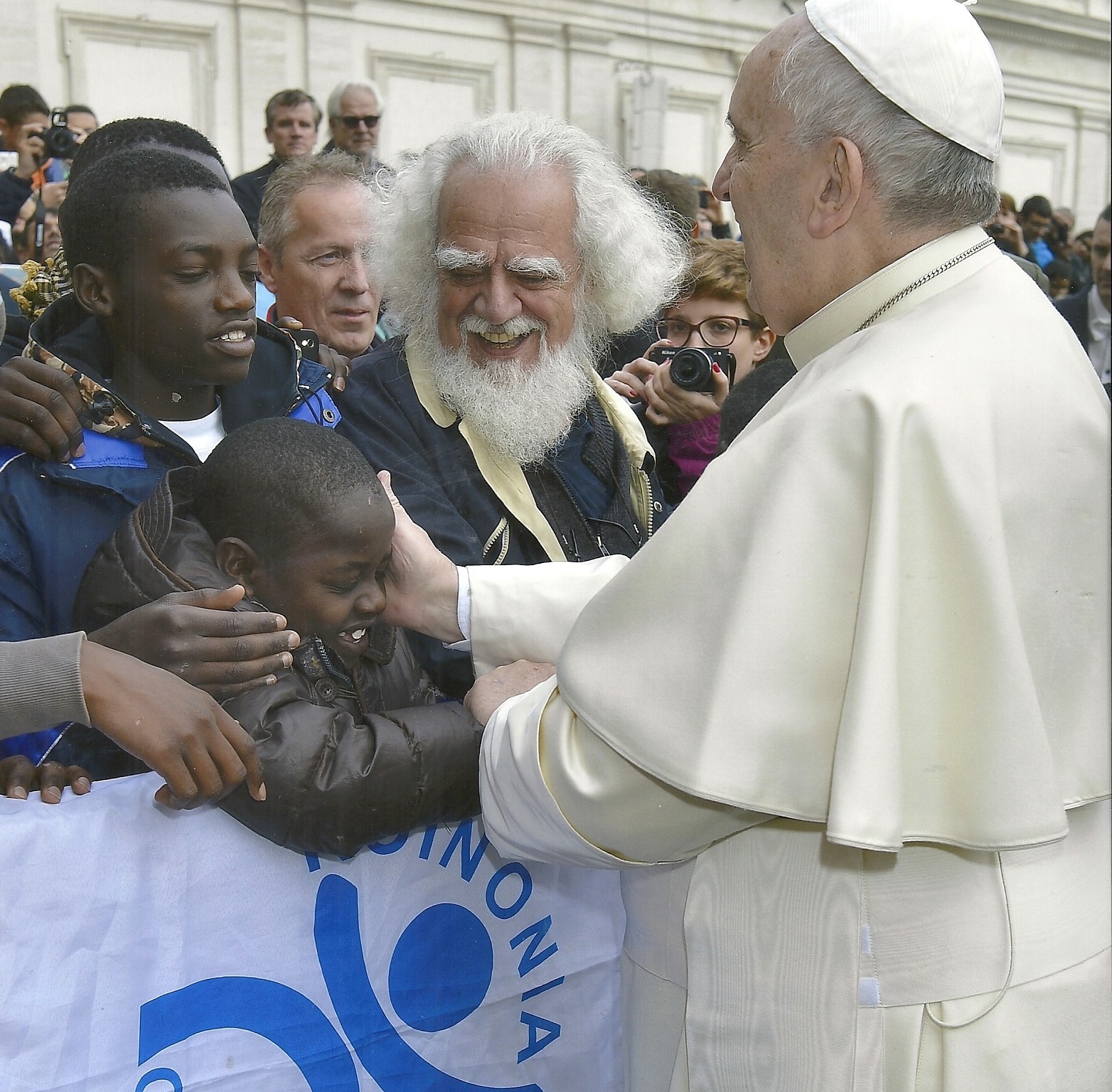 Padre Kizito e i ragazzi del Kivuli Centre con Papa FrancescoVista dal Kivuli Centre – uno dei centri per bambini di strada creati nelle aree più povere di Nairobi – cosa rappresenta la visita di Papa Francesco in Kenya?