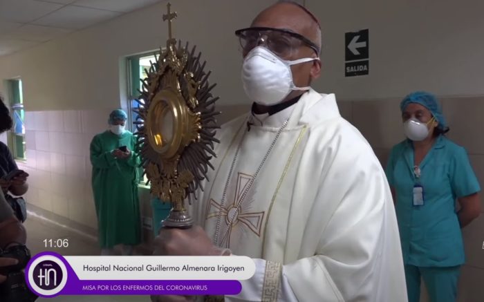 L’arcivescovo di Lima ha affidato la cura pastorale di quanti sono colpiti dall’emergenza Covid19 a un suo ausiliare, mons. Guillermo Elías. Che va a celebrare Messa negli ospedali e sovrintende a un call center diocesano a cui chiunque può rivolgersi