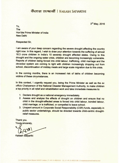 lettera di Kailash Satyarthi