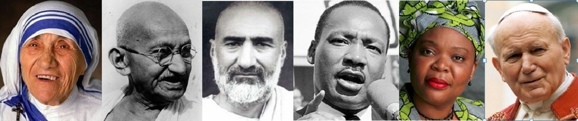 È la fondatrice delle Missionarie della Carità che proprio durante l’Anno Santo della misericordia ha proclamato santa il primo volto della non violenza citato da papa Francesco. Lo fa riprendendo un passaggio del discorso che Madre Teresa pronunciò nel 1979 quando le fu assegnato il Premio Nobel per la pace: «Nella nostra famiglia non abbiamo bisogno di bombe e di armi, di distruggere per portare pace, ma solo di stare insieme, di amarci gli uni gli altri […] E potremo superare tutto il male che c’è nel mondo». Indicando Madre Teresa il Papa vuole mostrare con chiarezza che la non violenza non è passività ma disponibilità a chinarsi sulle ferite del mondo, facendosene carico.