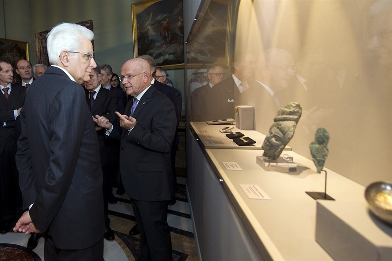 Ottanta opere antiche provenienti da importanti musei di tutta Europa ed una ventina di pezzi di artisti moderni cinesi compongono la mostra Dall’antica alla nuova via della seta inaugurata dal Presidente della Repubblica Sergio Mattarella al Quirinale nel pomeriggio di lunedì 5 dicembre. Il Museo Popoli e Culture del Pime di Milano ha contribuito con il calco della stele di Xi’an, la più antica testimonianza della presenza cristiana in Cina nel VII-IX secolo tramite la Chiesa siro-orientale conosciuta anche come nestoriana. Nella sua composizione artistica e letteraria la stele testimonia di un primo tentativo di incontro e di dialogo tra confucianesimo, buddhismo e cristianesimo. Ha parlato infatti di “ecumenismo” il curatore della mostra, prof. Louis Godart, nel presentare il pezzo a Sergio Mattarella; e si è alquanto soffermato su questa rara traccia di cristianità, che ha preceduto le più note missioni dei gesuiti dalla seconda metà del Cinquecento con i grandi nomi di Ricci, Martini, Aleni, Intorcetta e altri. L’antica Via delle della seta infatti non fu solo dall’antichità un tracciato esclusivamente commerciale, ma anche culturale, spirituale e scientifico.